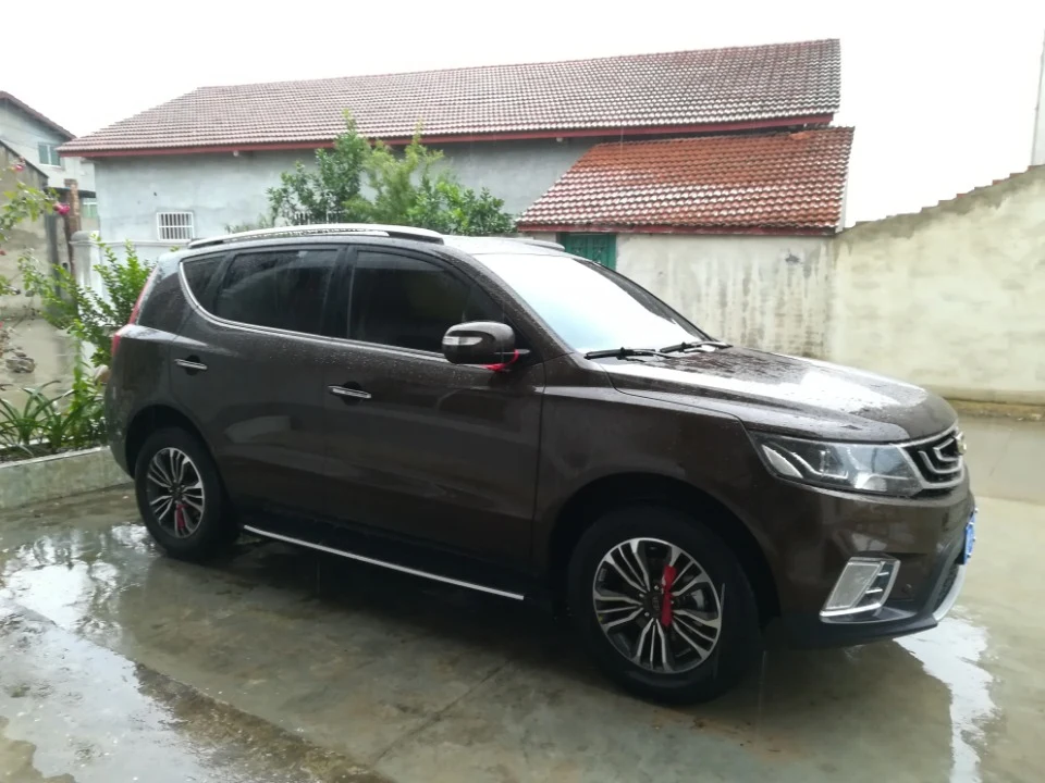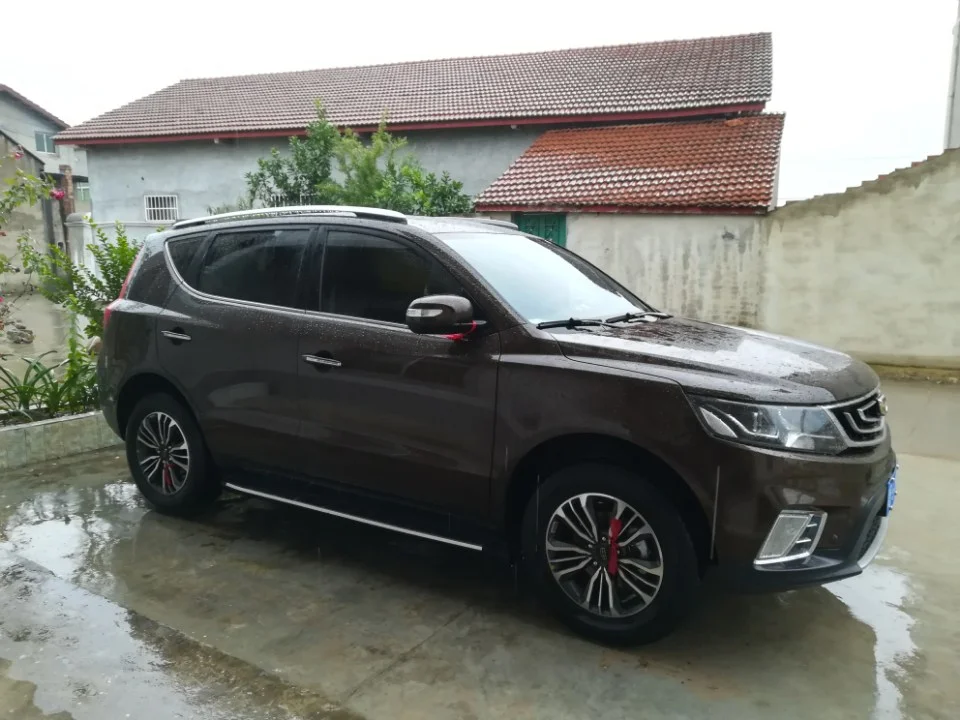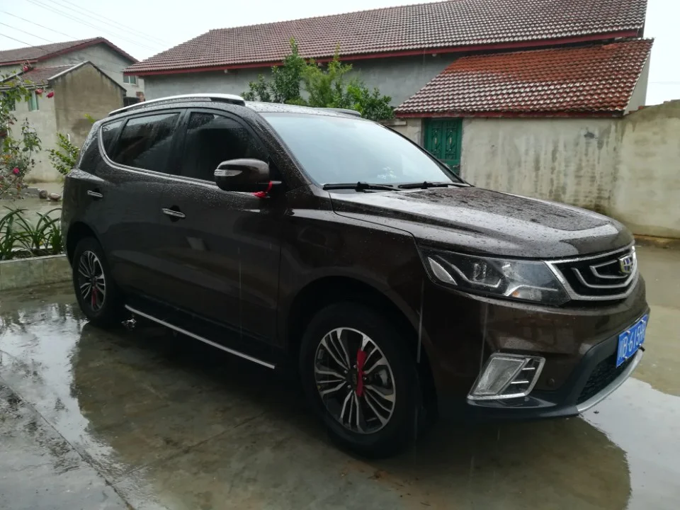 学驾照时就顺便下了买车宝典,看了N多车,纠结了很久开始想买众泰T700,毕竟好看,东风也考虑过,猎豹也看过,长安也看过。毕竟没多少钱买不起合资进口的,就看国产算了,最后敲定吉利远景SUV手动豪华1.8自然吸气的,1.8动力应该够用了,空间够大,主要看这车的口碑不错,吉利在国产里也算是大品牌老品牌了。现在才提车半个月,感觉油耗有点小高,可能因为是新手吧,希望过段时间油耗能降,经销商送的3000大礼包感觉就是忽悠人的,送的行车记录仪效果差,先用着算了,送的踩脚板感觉不协调样,有遗憾啊。一键启动还是不错,功能基本都有,感觉胎压监测没有是个失误,给大家看看外图,有才提车照的,又有贴膜安装踩脚板的照片,还有提车半月下雨时照的,感觉美美哒