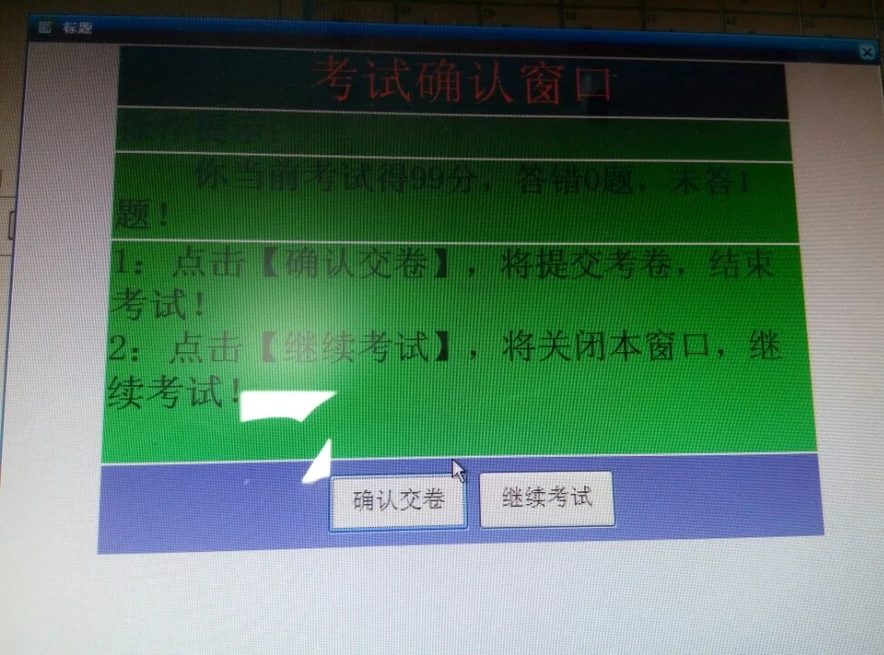 应该是满分的,非说我有一题没答,找半天找不到,交卷了,悄悄拍的。 经验就是,1325道题,先做一遍,做时速度一点,一定要快,只要做错的,别管是因为看错题还是其他什么原因做错的,还有确实不会的,蒙对答案的,通通点收藏,以后就反复练习自己收藏的题目就行了,一眼就能看出答案的,觉得可以了就把这题取消收藏(这样题目越来越少,反复练习时越来越轻松),反复仍然做错的题目就看看这道错题的网友是怎么评论的,精华往往在评论区里,有的网友说话幽默风趣,有点网友能直接指出这道题的关键点所在,这些都能加深你对这道错题的印象,考前两三天反复做它几遍收藏的题目就行,还有别去模理考,真心真心真心(说了三遍)没什么B用,反而有反作用,相信我,真的没用,第四遍了,有那时间浪费,不如再去做两遍收藏的题目,你就这样按我说这步奏来,还不能过,说句诛心的话,你别不高兴,你真的不适合考试,想点其他不正当的手段吧😉