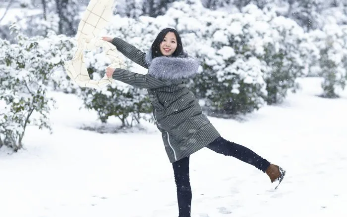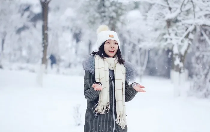 站在初雪中,欣赏那美丽的初雪,