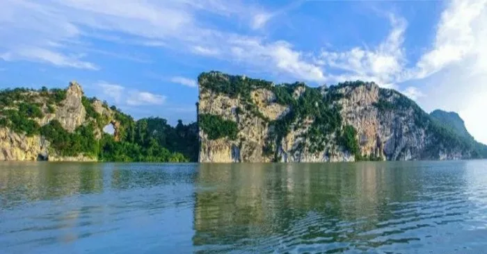 柳城崖山依山傍水,绿草茵茵,碧流潺潺,炊烟袅袅,风光俊朗,环境优雅。绿色的融江蜿蜒在群山翠岭之间,带着一片碧绿慢慢流入柳江,秀丽的青山绿水仿佛把人带入仙境一般。崖山的秀美与桂林象鼻山有些神似,更显景色迷人,难怪不少电视剧都来这里拍外景。