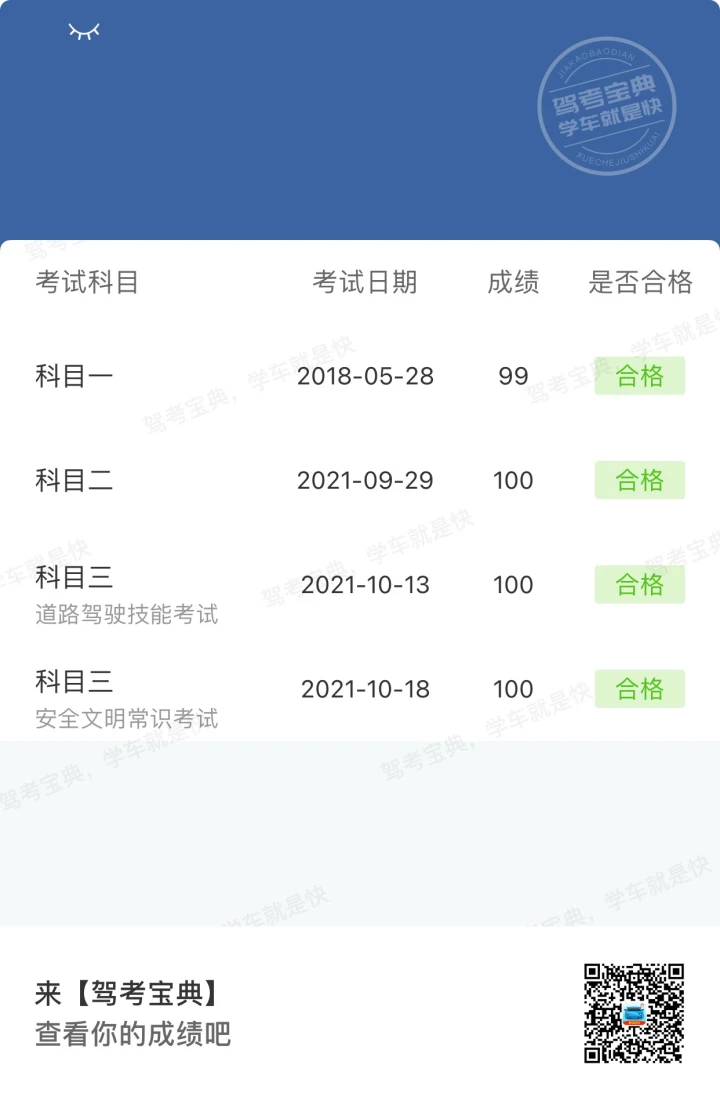 18年报名驾校,科目一考了就对学车厌恶老(˶‾᷄ ⁻̫ ‾᷅˵),本来该5月到期,因为疫情延期半年,一鼓作气拿下,科目二到拿证实际用时30天,科目二20天,每天一个半小时,科目三5天,每天一个小时。 科目二:记住点位,多练习考场。倒车入库宁愿早打修方向。 科目三:细节很多,我在驾考宝典上看考场路线视频很有用,养成点刹习惯,过路口一定要多观察,我们这里不观察的后台人工拦截,直线行驶可轻微动方向盘,不超过5度吧,安全员也有关系,我速度很慢,考完后安全员说他快睡着了(^ν^)但人巨好,没有为难我。 科目四:练习驾考宝典那一千多题,错题反复做基本没问题。 祝大家早日拿证^_−