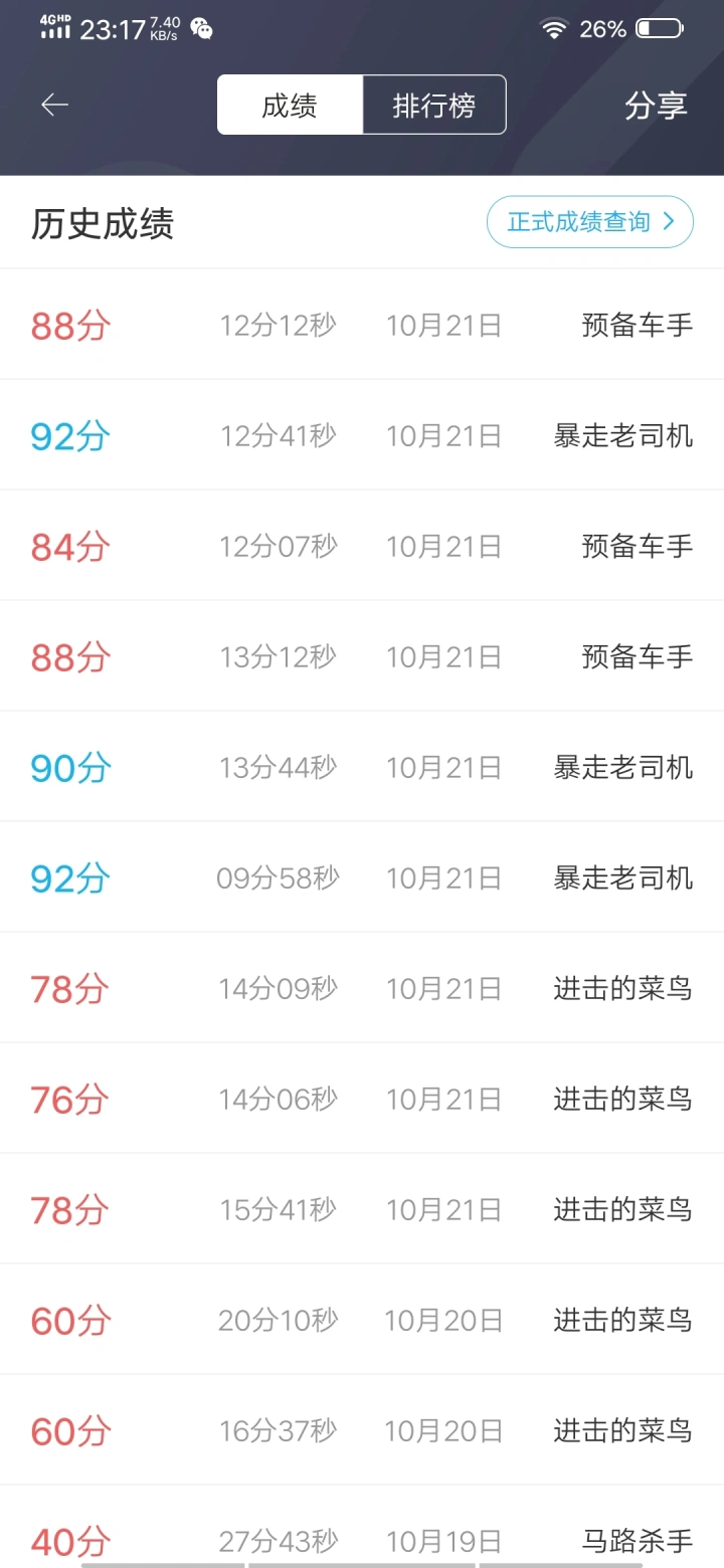 分享一下学车路吧,斥巨资终于拿到本本了。 大家选择驾校很重要,科二挂了两次以后就转驾校了,我就是没选好,中途还换了一次,所以又增加了费用,但是转了以后一切比较顺利,科二也过了,科三科四一把过了。总的来说,我科一是吧1700多道题都刷完了,去了肯定没问题。科二就是多练习倒库,其实就是自己会调方向了,都没问题。科三一定是细心问题了,但是感觉科三没有科二难。科四也是刷题刷了一晚上,考了94分过了。昨天拿到本,科四考完了赶紧查询成绩,拿到本本就查不到了。 前来卸载宝典来了,祝各位大神也可以把把过,早日拿到驾驶证!