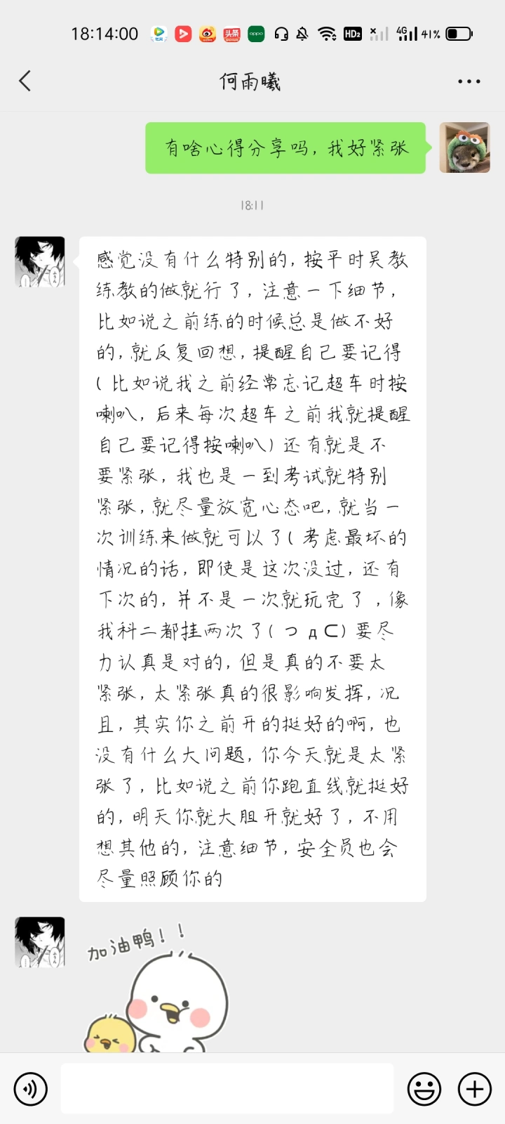 考试前几天看着满桌的饭菜和听着家人的欢声笑语我却有时候突然担心,就会觉得一旦挂了这些美好都会消失,家人会不再期待,亲戚会再次摇摇头。一想到这里我就好担心啊哈哈哈 。 尤其是科二科三高考都没这么紧张,我高考坐在最后一排,永远都不会忘记我抬头看时间时发现下面学生那么多抄 的,毕竟是小位置,管不严可以理解,只可惜我不擅长,只能在赛道上看着别人超过。现在我知道了即使不喜欢哪样东西,也要去以最好最积极的去应对,专业和人也是如此。关于我在科二科三的攻略已经发了,希望对大家有一点帮助。 科三的那个灯光可以抽时间背一下千万不要搞错了,我是在卫生间时看了一下,后面虽然没有出错但是还是一直担心着,灯光挂是真的可惜。 祝大家都能顺利通过,福星高照,牛年大吉。