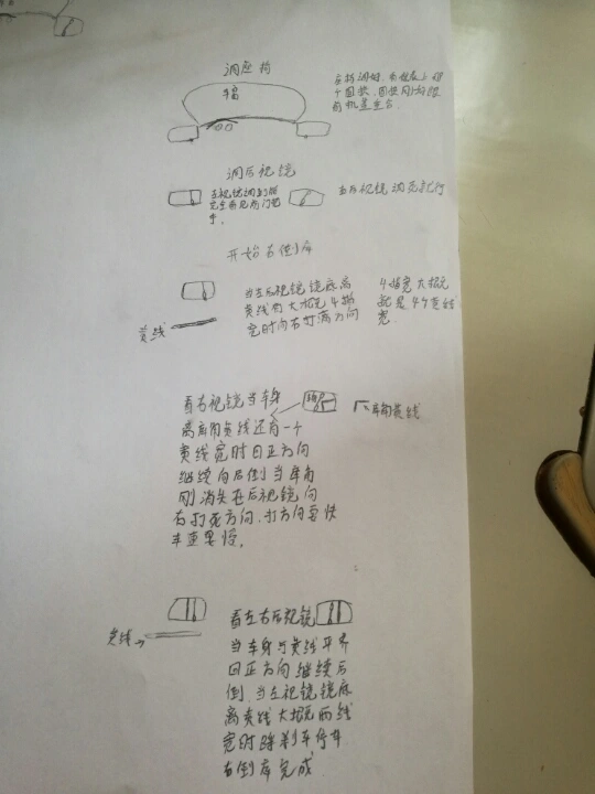 你看图吧,不过画的不好,我就是这样练车的,考试一次过,前提是我身高只有1米6