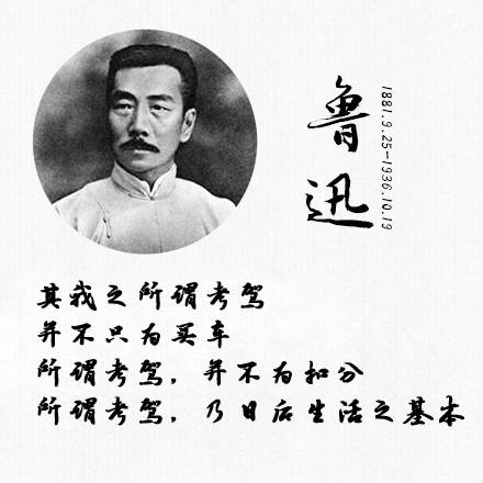 【鲁迅先生的9句话,送给考驾中彷徨的你】 ①愈艰难就愈要做。驾考,是向来没有一帆风顺的; ②驾考是不足惧的,最可怕的是自己努力了数月,结果却败在了考官的手里 ③愿中国女司机都摆脱傲娇,只是看前方,不看左右,也不看仪表盘; 今天,鲁迅先生诞辰134周年。转发,重温,致敬! PS:本文由“典姐”改编自鲁迅先生经典名句,喜欢的请点个赞。
