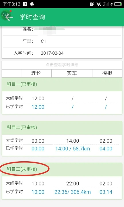 紧赶慢赶周日刷完学时,今天坐等审核学时,上午未审,下午3点半教练打电话问审核了没有,4点教练说别人的都审核通过了,可是我的还是未审核,继续等吧!