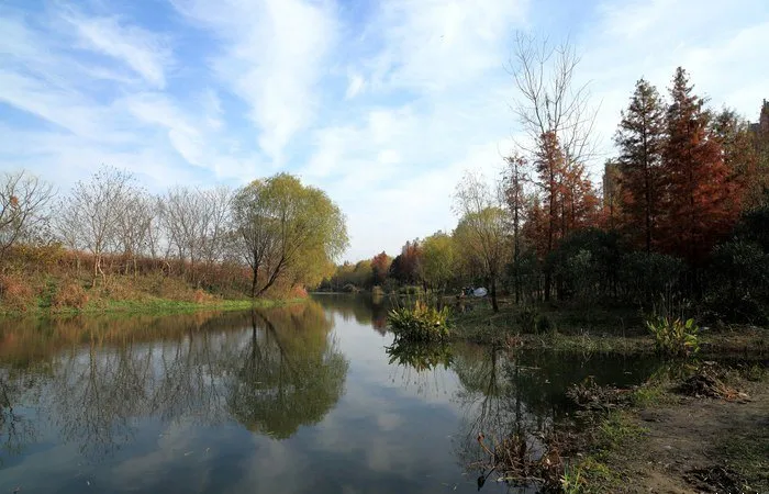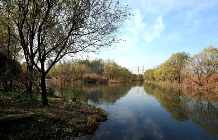 今天天气晴朗,蓝天碧云,气温达到17度,非常适合户外游玩。兴趣使然,行走于新江湾城生态湿地长廊,拍了一组片子,给自己的2016年摄影做最后一次作业。