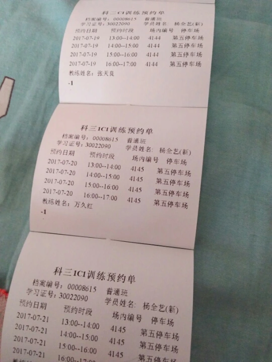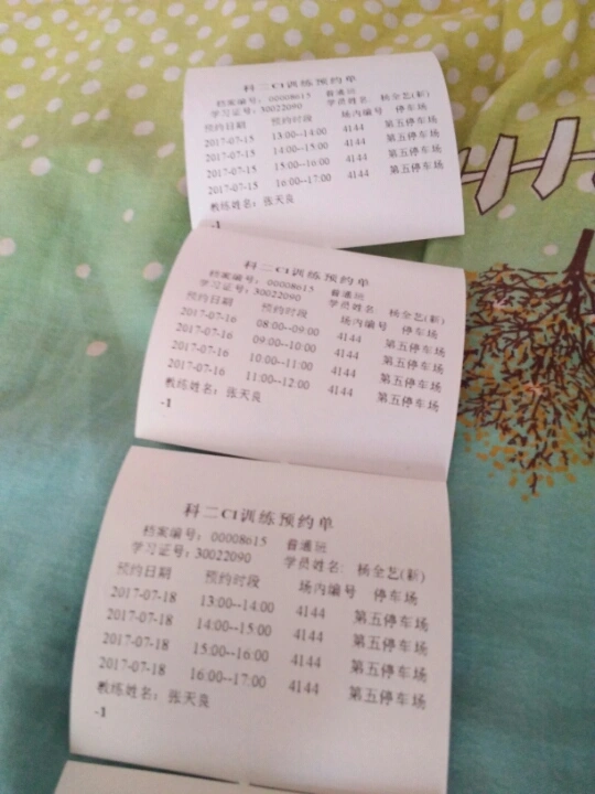你每次练车的学时单