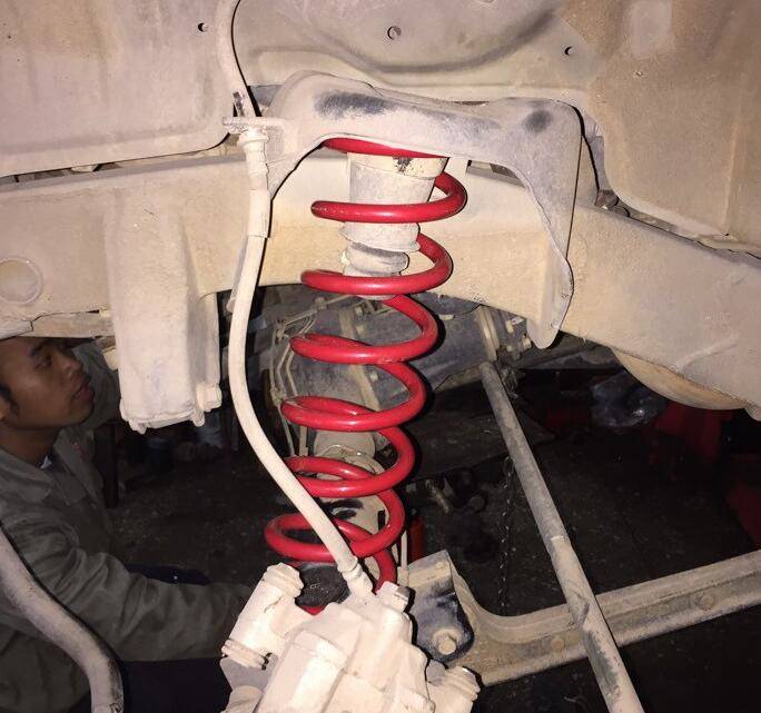 经过精挑细选最终选择美国大厂的普康姆ES1000越野改装避震!比OME便宜很多!比OME稍粗!比OME稍硬,弹簧选择国产的!回来切掉了3厘米也就一寸!个人不喜欢太高!合适就好!因为我换大了一圈的轮胎基本也能达到1.5升高的目的!家里人上下车也方便!对比原车KYB粗不少!放心越野去,一直信赖的轮胎,便宜,好用,耐用。