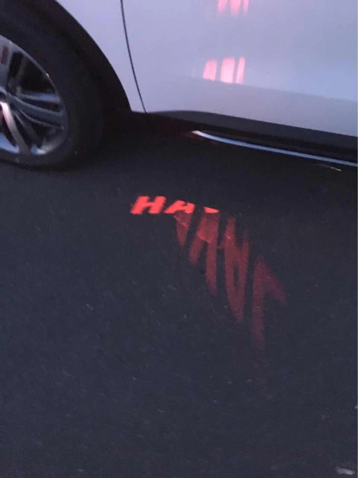 挺有意思的迎宾投影 我没有拍好 将就一下 ,大大的哈佛标志 后视镜下投的
