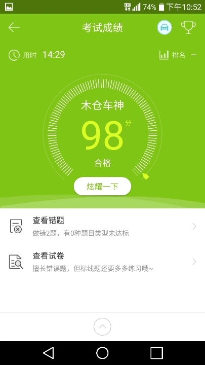 十六号考试,朋友告诉我看两遍就行,一直没看,昨天发奋图强看了一整天,吧一千多题看了一边,又把五星错题看了一边,今天没看刚才直接测了下合格,,,告诉没背或没背好的人要放松心态但要上心,认真的背其实很简单,稍微不懂的就要看看下面的解释和评论,希望自己后天考试能过,