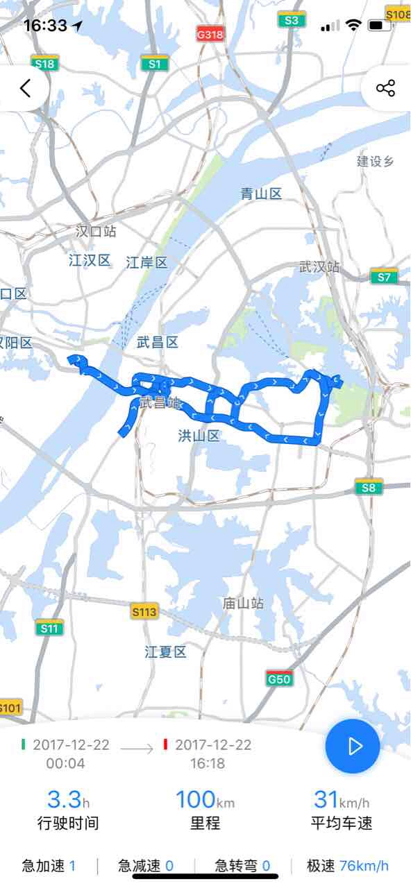 哈哈哈 驾照还是热乎的 市内居然能跑百公里😄 看来那两次下错高架口子 绕了不少路哈哈