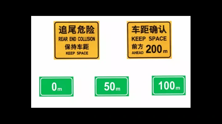 在高速上,路边常常会整齐并且显眼地出现0m、50m、100m的绿色标志,这些标志就是用来帮助你测量跟车距离的,八卦君建议,若车速达到100km/h以上,需要充足的空间来应对突发情况,最好与前车保持200米以上的跟车距离。