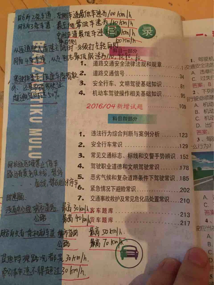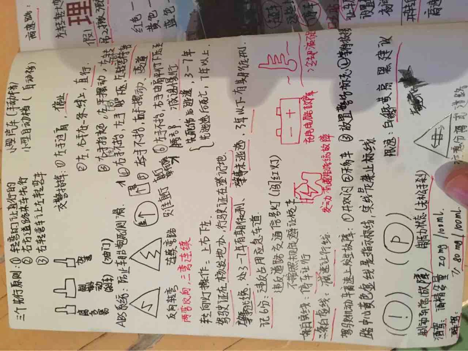 今天去考科一,98分,毫无压力过了。特来谢典,其实把宝典上的题目看了,和发的书上题目差不多一样,过科一毫无压力,错题多看几遍,这是我的笔记,希望对大家有帮助。