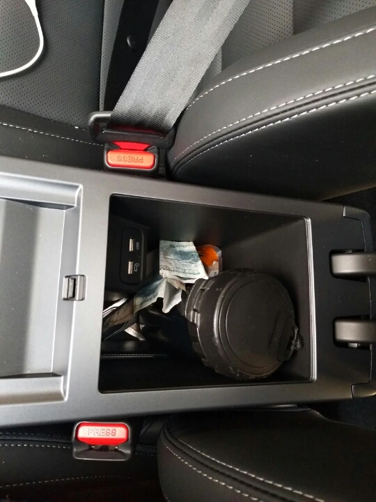 储物盒还是比较大的放一个水杯和其他东西还能盖上,车内有3个USB接口,不过没有烟灰缸