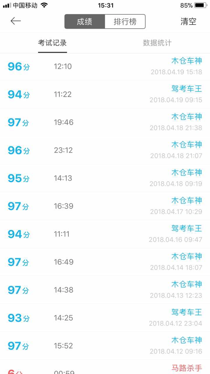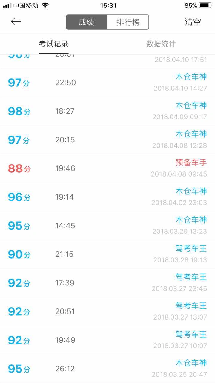 明天科一考试。今天媳妇考科一尽然考了98分,在驾考宝典上她没有我考的好。但愿我也能及格吧。现在基本上只要考都能及格。加油明天必须及格要不然能让媳妇,笑话死。
