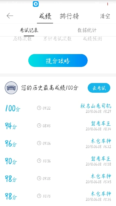科一94,科二100,科三100都是一把过,为期三个月的学习十三号科四,争取还是100!加油!
