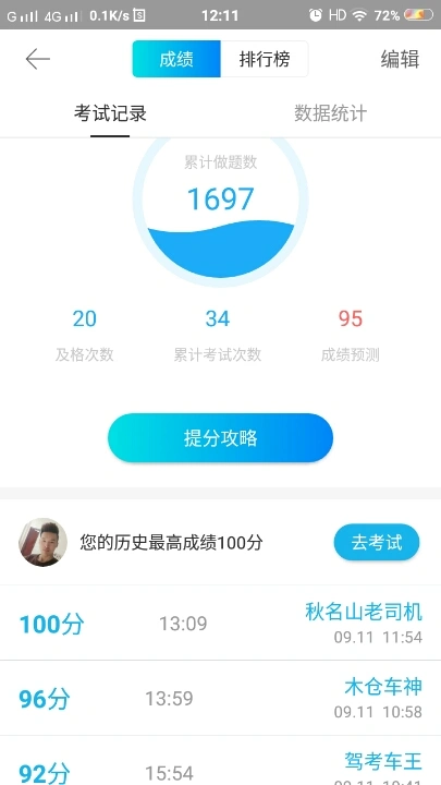 后天就要考试科目四了,经过这么多天的努力,终于就要见到我可爱的小本本了,你们说,考试成这样能过不?? 除了一开始练习题目时有点慌,没合格过,最近这几天练的很多题目,是不是有长进了? 反正,通过这几天的练习,基本最低分也能及格,就拿过一次最高100,有时候其实练习题目一定要认真仔细读题目,要是放松,心态摆好,什么都不是问题😊 提前祝考试科目四的小伙伴们全部一次性过😊 一起加油吧!