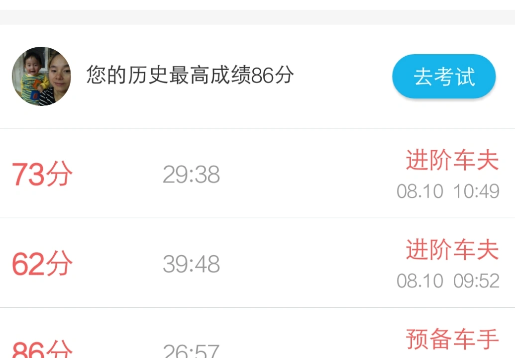 科目一 我的成绩这样都可以过,,,科目一题目很简单,,记住自己经常做错的题就可以了,,, 科目二,记住点,千万不要紧张就可以了,上车就按照教练教的开就可以了,,,就像我们平时练车一样,保持好心态就可以过了,, 我科目一,,在宝典都没有上过90分,,只是把自己容易做错的做了很多遍,就过了,, 科目二,,保持了好心态,,一把过,, 等待下个月的科目三考试了,,,加油,,,