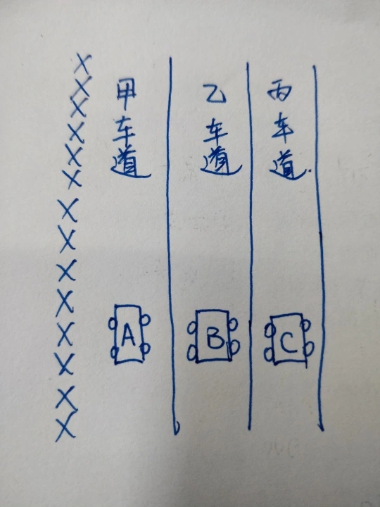 道路通行规定中第二点变更车道问题第4条,左右两侧车道的车辆向同一车道变更时,左侧车道的车辆让右侧车道的车辆先行。 意思是“如图甲乙丙三条车道,ABC三辆车按图中所示位置行驶,A,C两车想变更到乙车道行驶时A让C先行”吗?