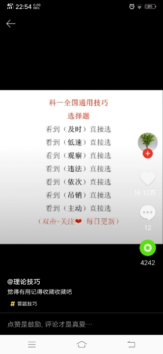 五天速成94分😃 每天按顺序做题三百多道 然后不管错对都看地下别人的评论和官方解释不过官方解释没有底下别人解释通俗易懂 虽然很慢但是有不少别人的经验 然后自己找适合自己得方法 做完三百道题后 全真模拟每天最少四次到五次 不确定的先跳过先做后面的最后做前面的 你想要是前面刚刚开始前十道题错了一两道题那后面心态越来越炸 所以建议不确定的先空着先把后面做完再回过头来做前面空题(别忘了做空题 ) 最后着重看空题把之前所有空题做一遍 以上就是一个今天刚刚过科一的得心得体会
