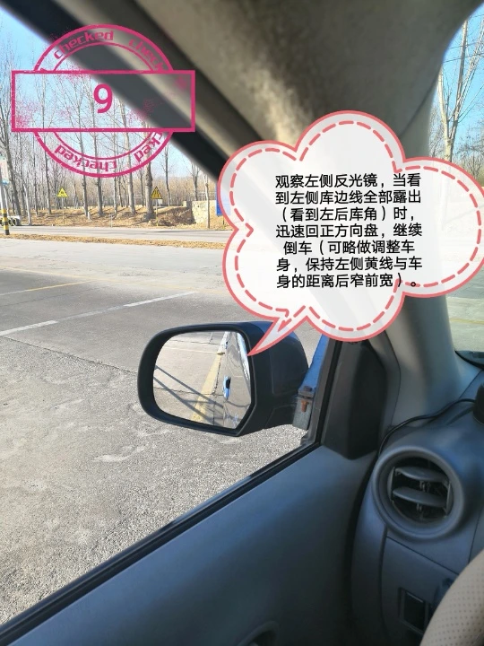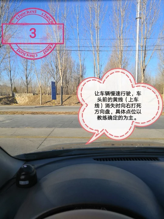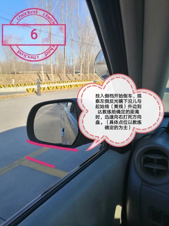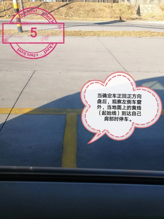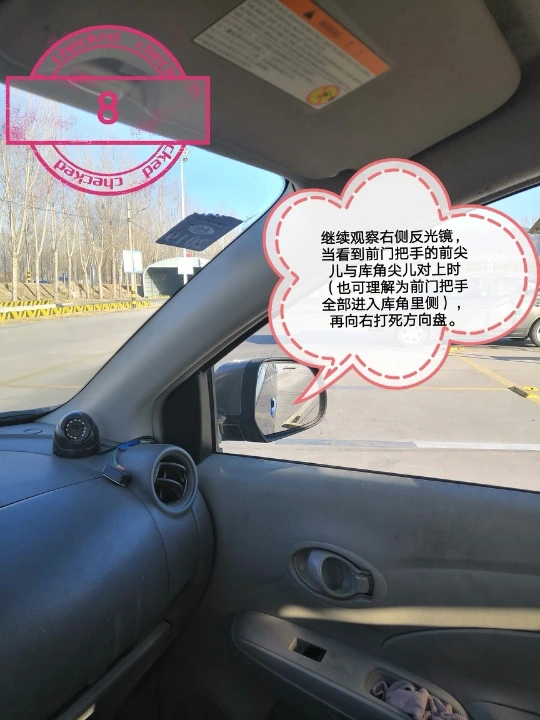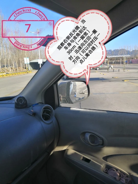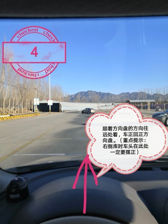 由于考试场一些标志、标线整改,因此有些参考点位发生变化,特别制作了新版本的倒车入库图片,以下是右倒库操作步骤图片详解。