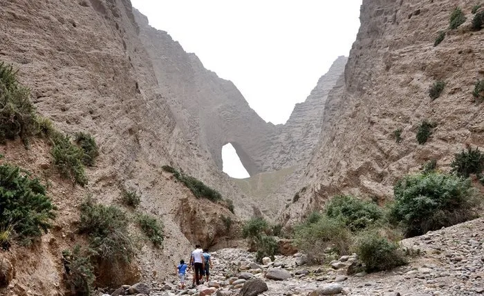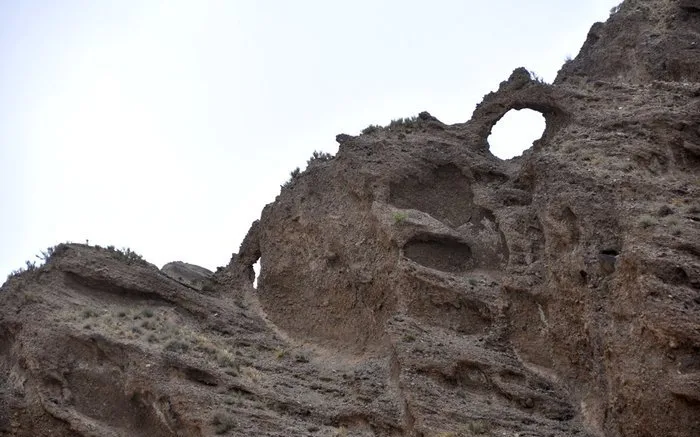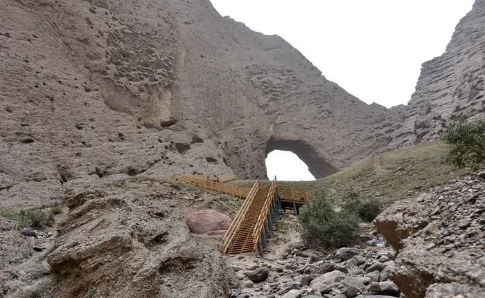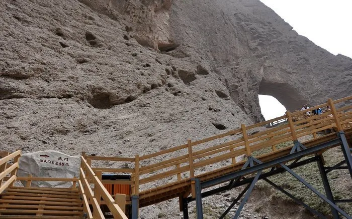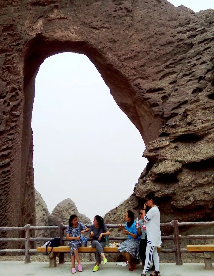 望望这个“日月门”,远远高山壁上的一圆、一长两个山洞,真像是日月辉映呢。