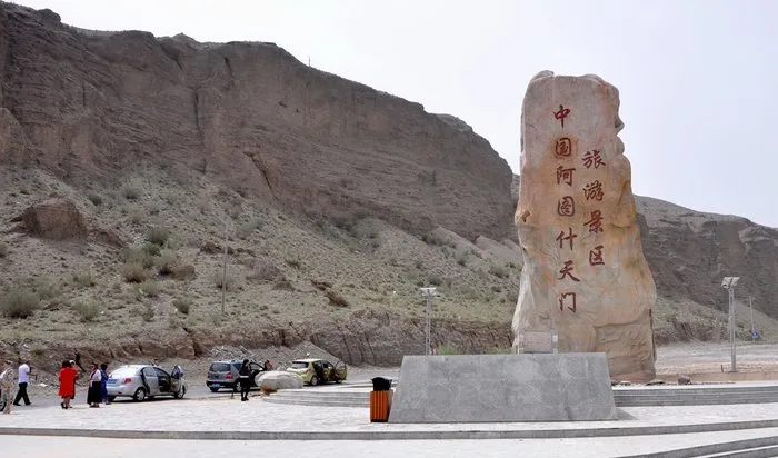 看到阿图什天门旅游景区立在路边的石碑了,总算是找到地方了。