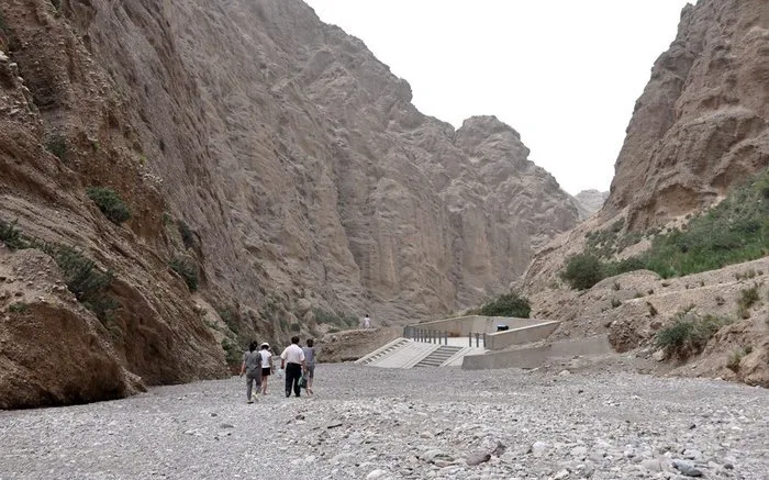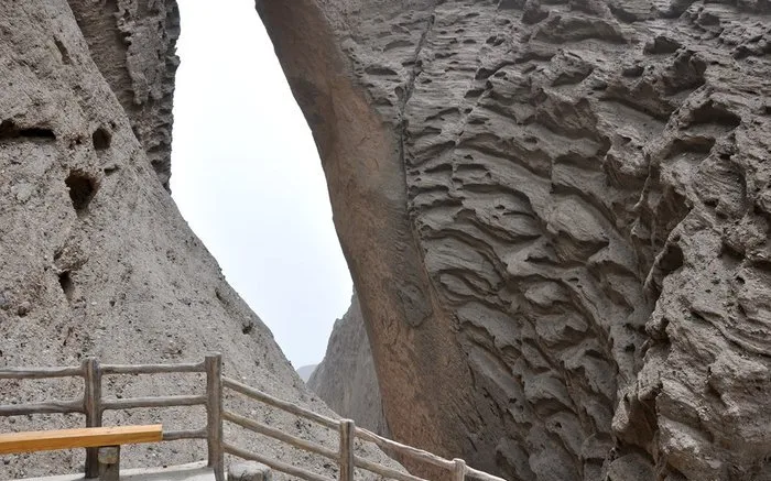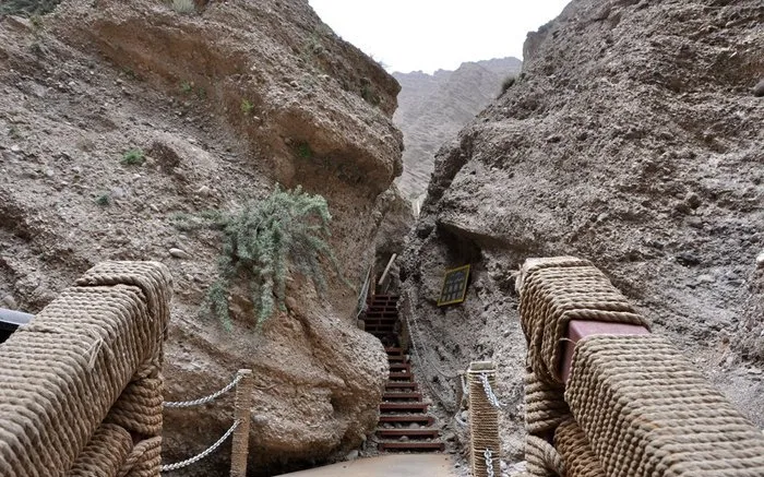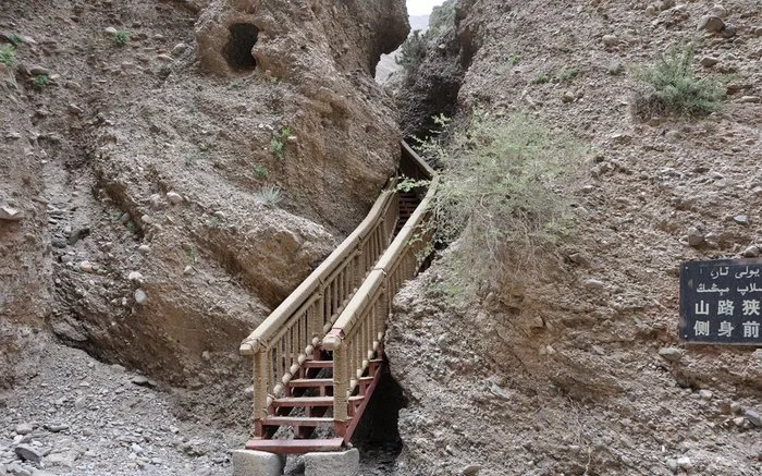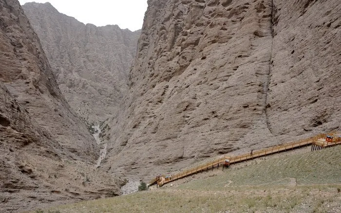 最窄的地方从土山缝中通过,专门修了一座木栈道。