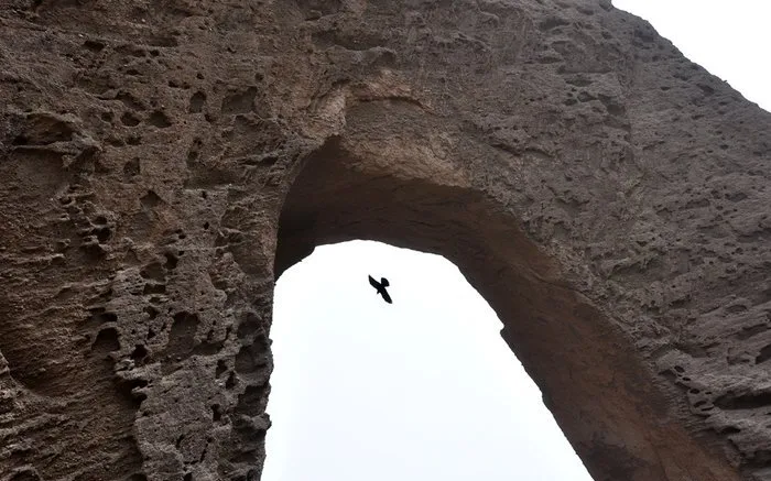 几只黑鸟从天门中来回穿梭,更增加了一种神秘感。