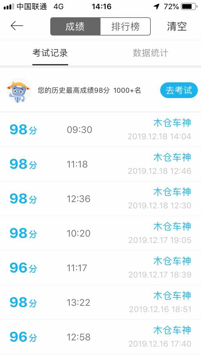 每次都差不多98分,说简单也简单,但是每次由于自己的大意或错觉就容易出错二三题,每次时间都在十几分钟或二十几分钟100道题就做完了,可能做得太快的原因,到了真正考试的时候,我一定要慢慢地做,慢慢地来,反正时间多的是,我只要随便一做就能及格,其实也没什么可担心的,90分也是及格,100分也是及格,心态放好,准备迎接考试,年后准备学车!