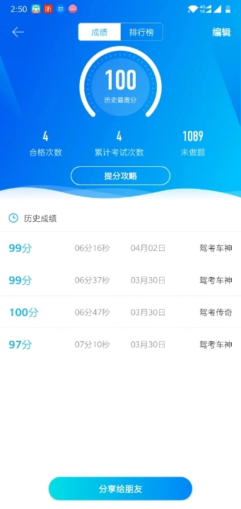 学了将近3天吧,先把全部题目刷了以后,重新下载了软件 ,能平时应该都是99分为了追求速度我开始直接题目扫一眼直接做,我如果仔细审题的话100分应该是稳的不过时间要六七分钟。。一直想突破到4分钟以内,不过两分钟100的是真的强,我学了三天也就这样了,不知道考试有没有时间限制😷