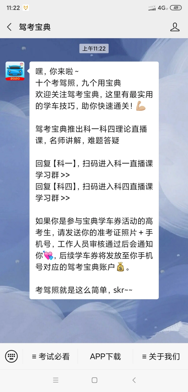 驾考宝典微信公众号,发你的准考证和手机号就行了