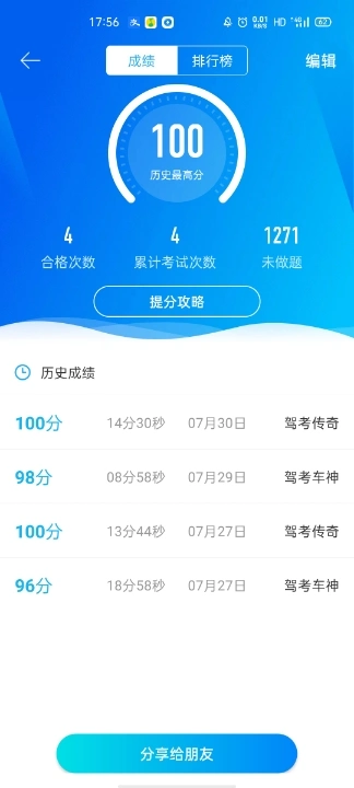 今天考的科一,这是刷题成绩,一