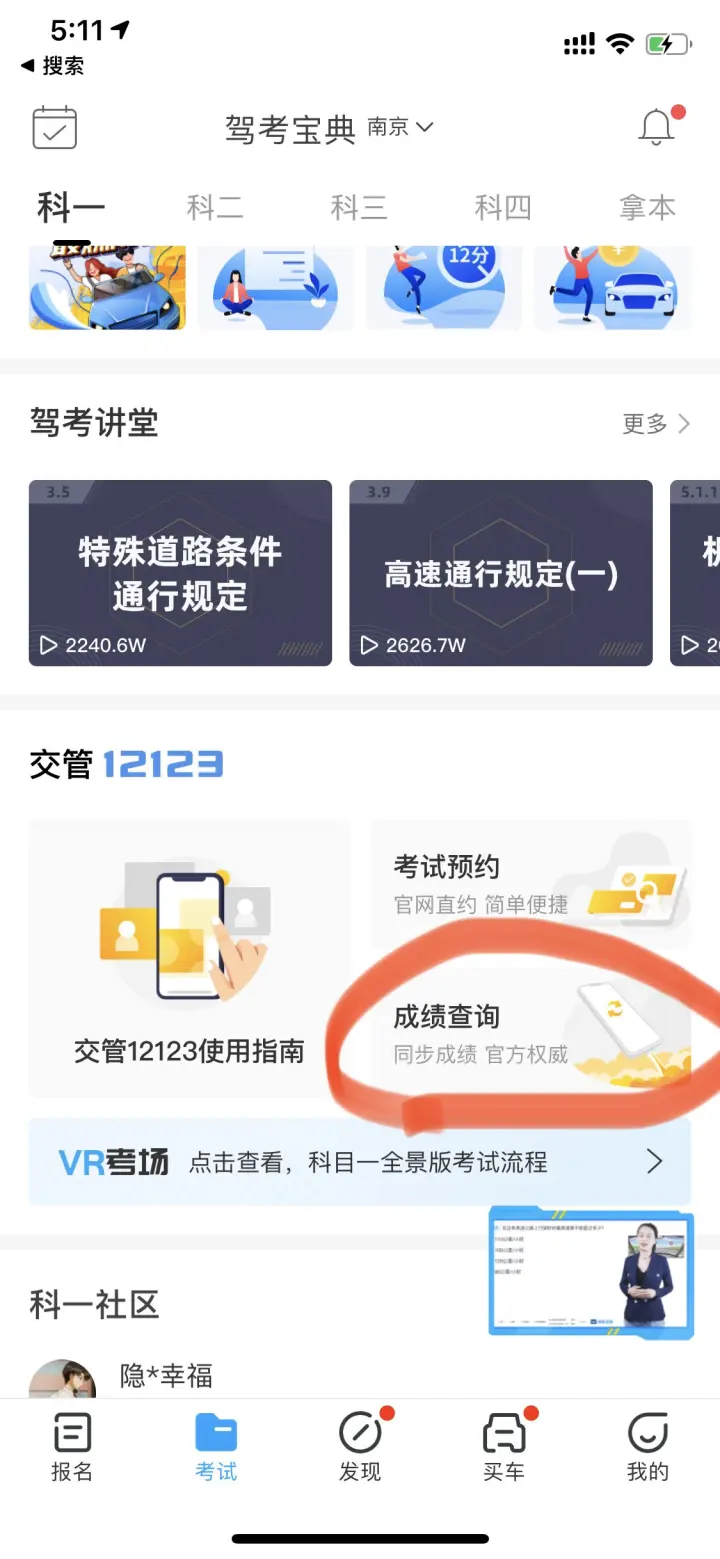 科目一、科目四,往下拉动