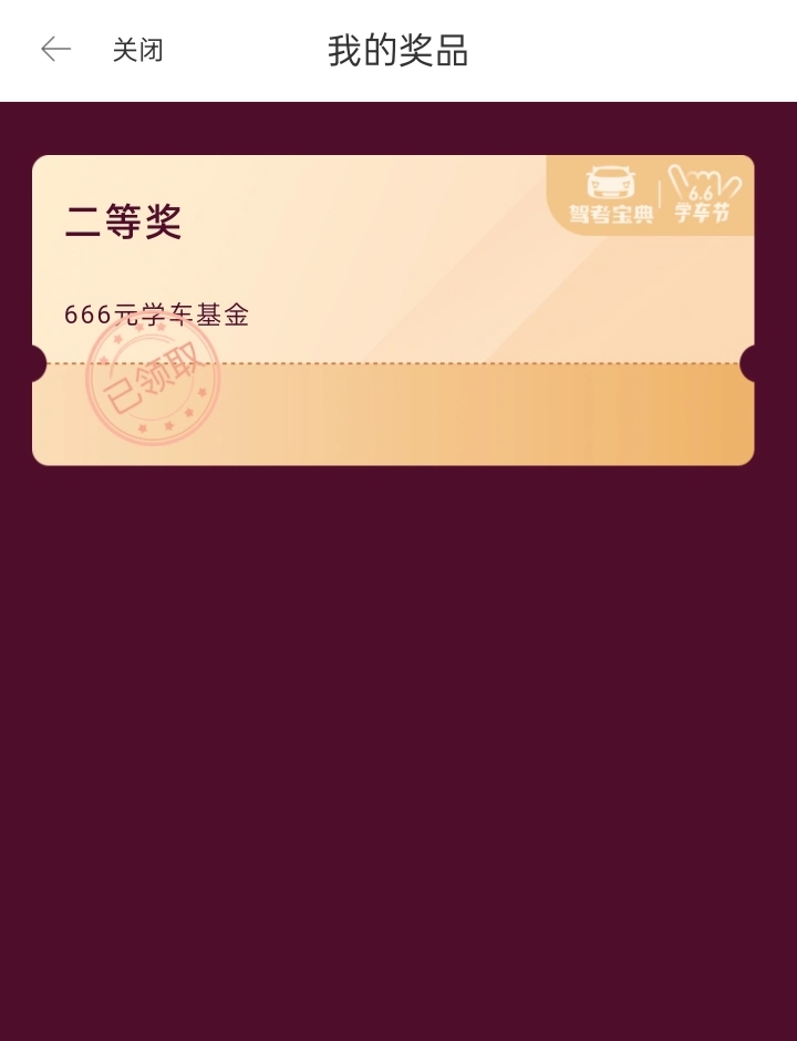 恭喜恭喜~欧气爆棚呐!杯子也来蹭好运啦!驾考宝典6.6学车节,没中奖就退!中了不想要就退!点击链接查看链接 参与活动