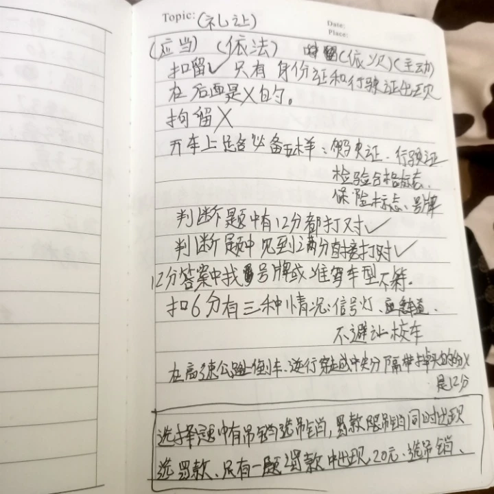 字写的不好看,但是还是很有用的,大家看看把科目一没过的我考了94分。