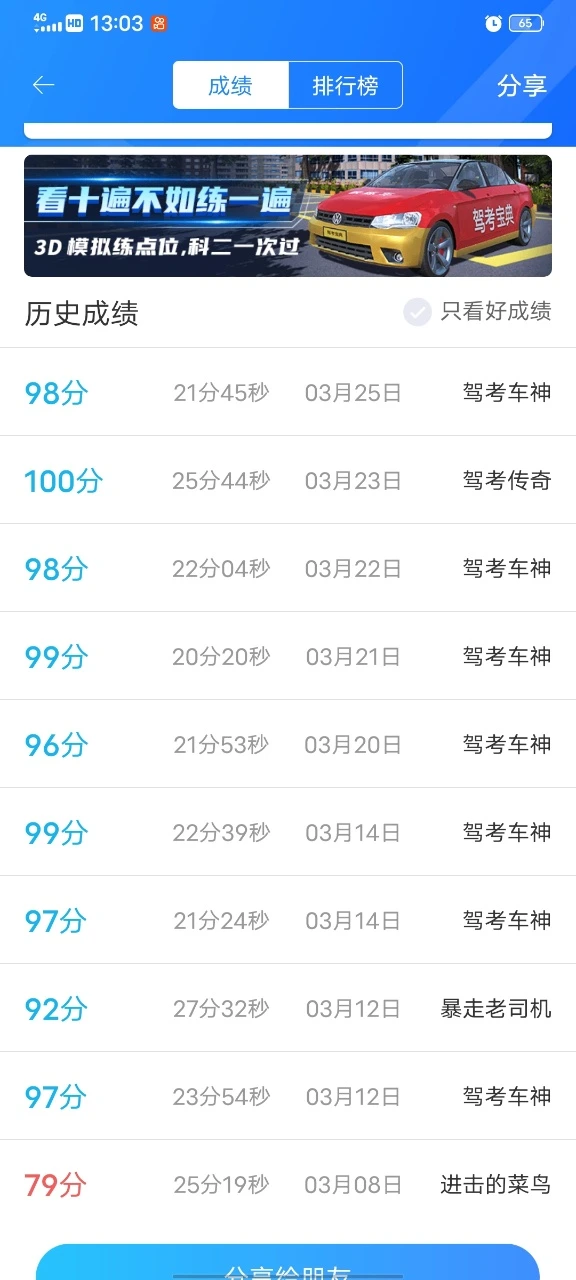 平时模拟考都九十以上,今天正式考试好险,还好勉强及格