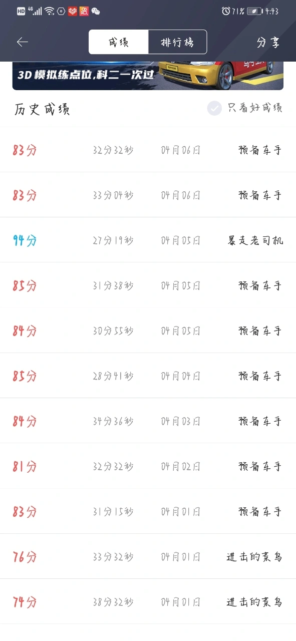 静静的考到一个94分,今天上班又考八十多分也不知道这个成绩能不能过😪