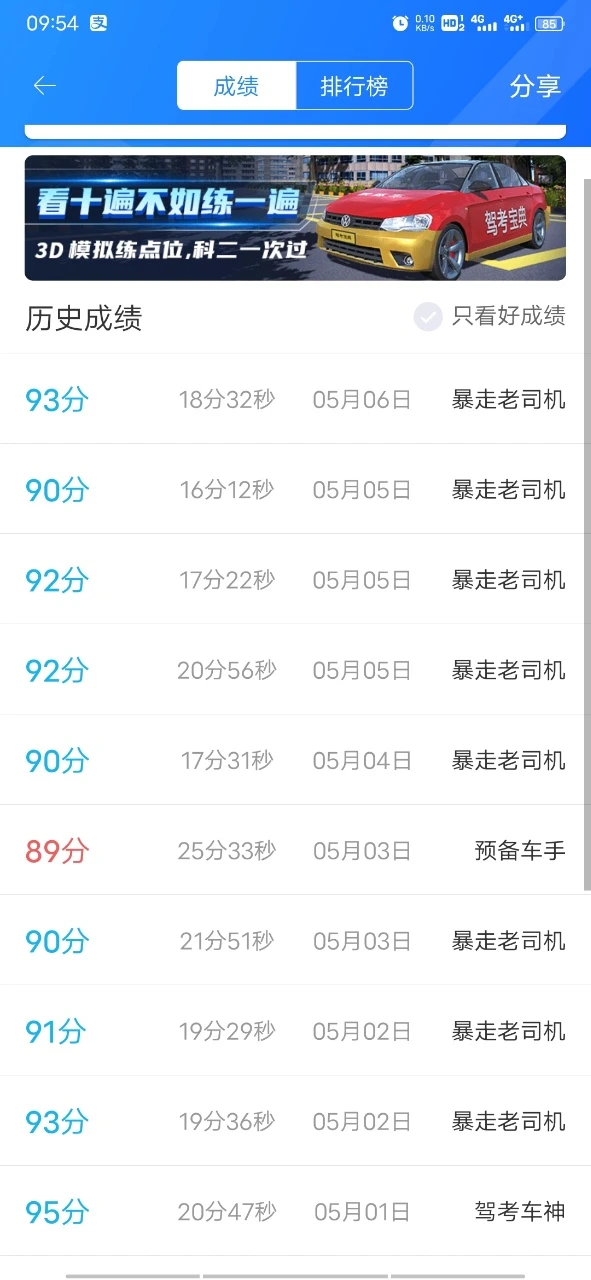 明天考科目一B2模拟考试昨天达90分今天达80一紧张容易忘啊明天希望我过明天考试今天就紧张😰