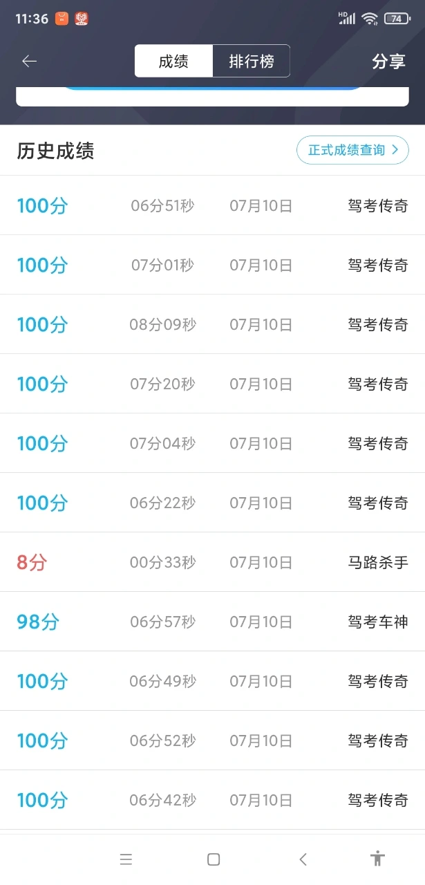 这样的答题速度,这样的分数,14号科目四一次性顺利拿到驾照应该不成问题吧👿