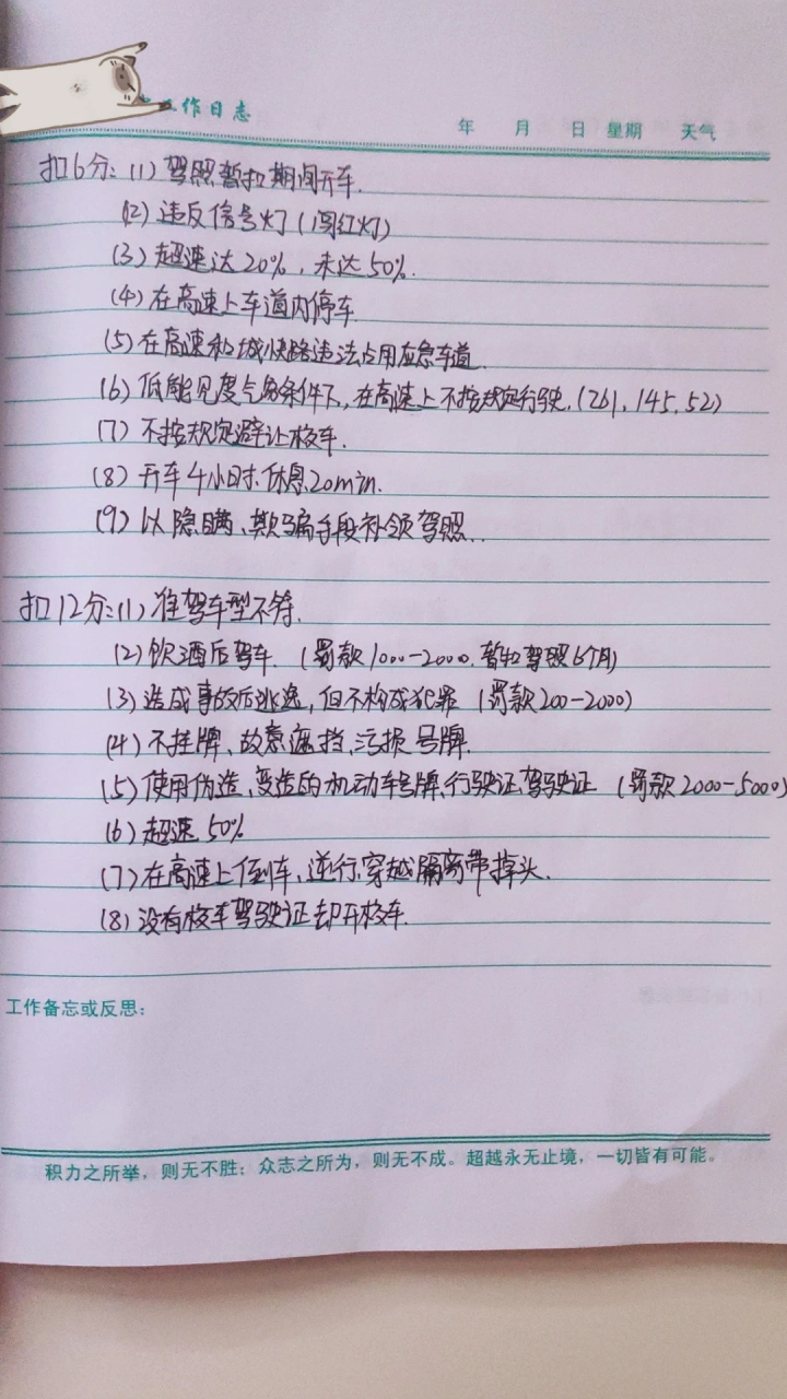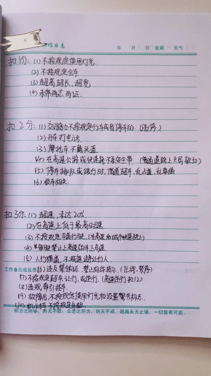 20号去考科一,有一丢丢紧张啊啊啊😰 在宝典上测试了几次都过了,希望考试不要出问题🥺 后三张图是我自己总结的关于扣分和罚款的小汇总,字迹一般大家见谅😋,有疏忽的欢迎补充哦~🤗 最后祈祷科一顺顺利利通过🙏🏻🙏🏻🙏🏻