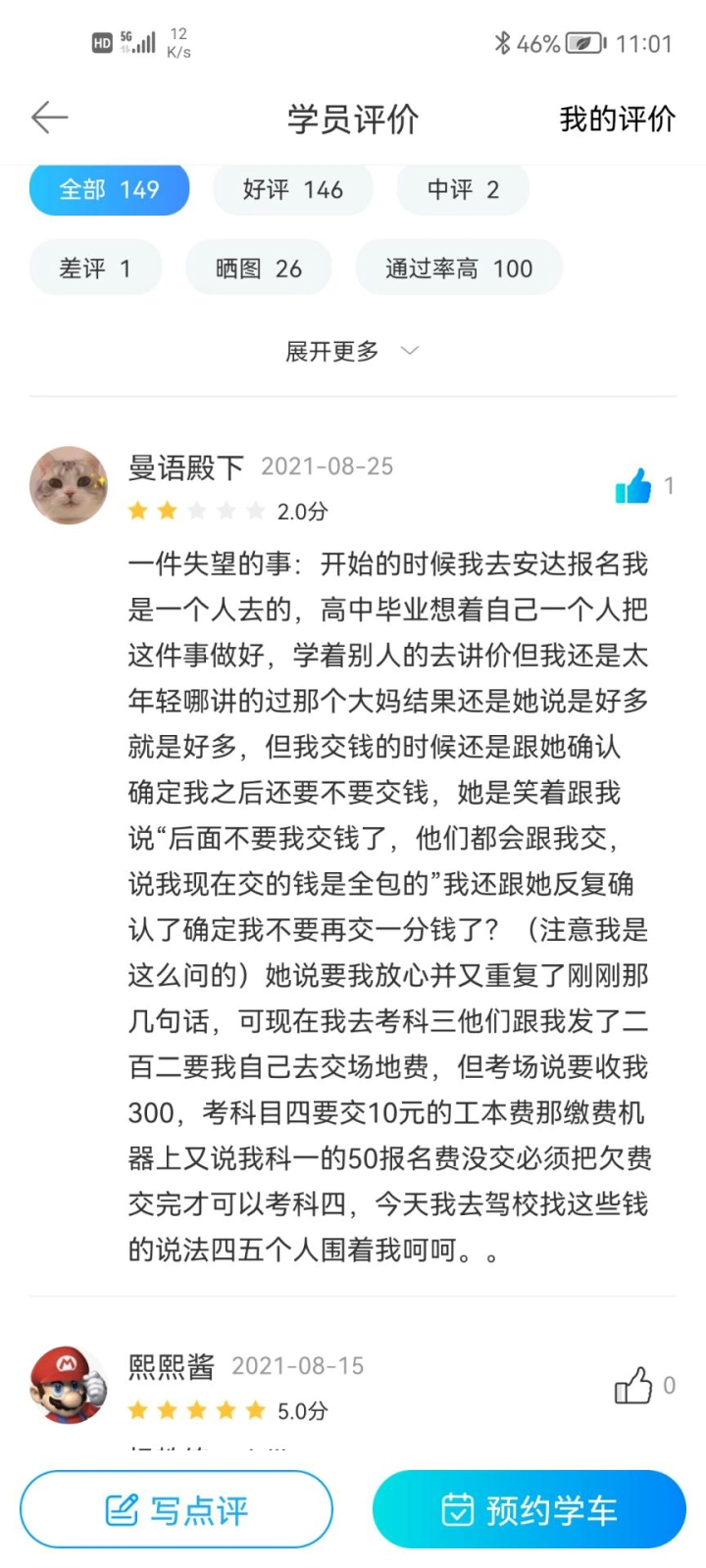 驾校都可以删评论了,真厉害呢。难怪一百多条全是好评,差评这是都被删掉了吧