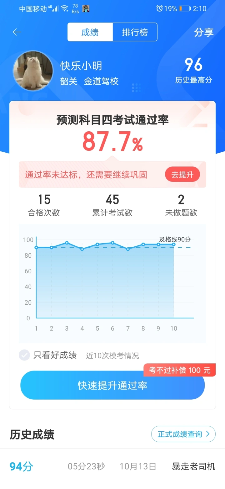 各位亲,这样的成绩去考科四,可以过吗?😥压力还是挺大的