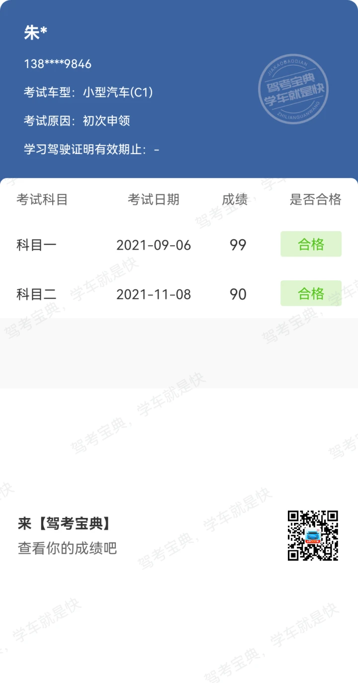 离驾照到手只有一步之遥啦!今天上午,一上考试车反而不紧张,结果刚到s湾安全员叫我停住,系统报考试结束,当时懵逼惨了,结果是断网了。网络恢复后重新开始,一把过的,就是在坡道定点停车那里扣了10分,总结一句话,脚慢手快不要紧张,一定能够过关。加油!