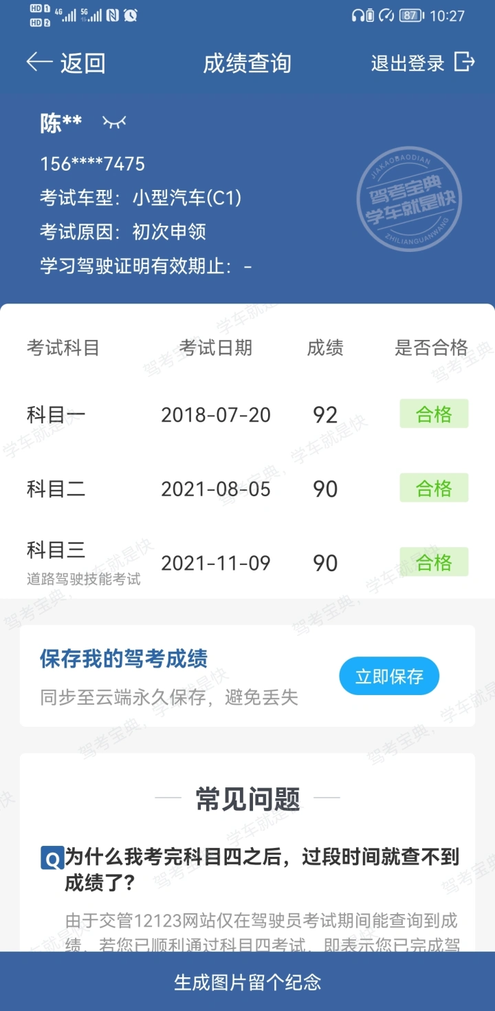 挂了2次第3次终于过了😂😂而且还是险过。科三的朋友们过来接好运…