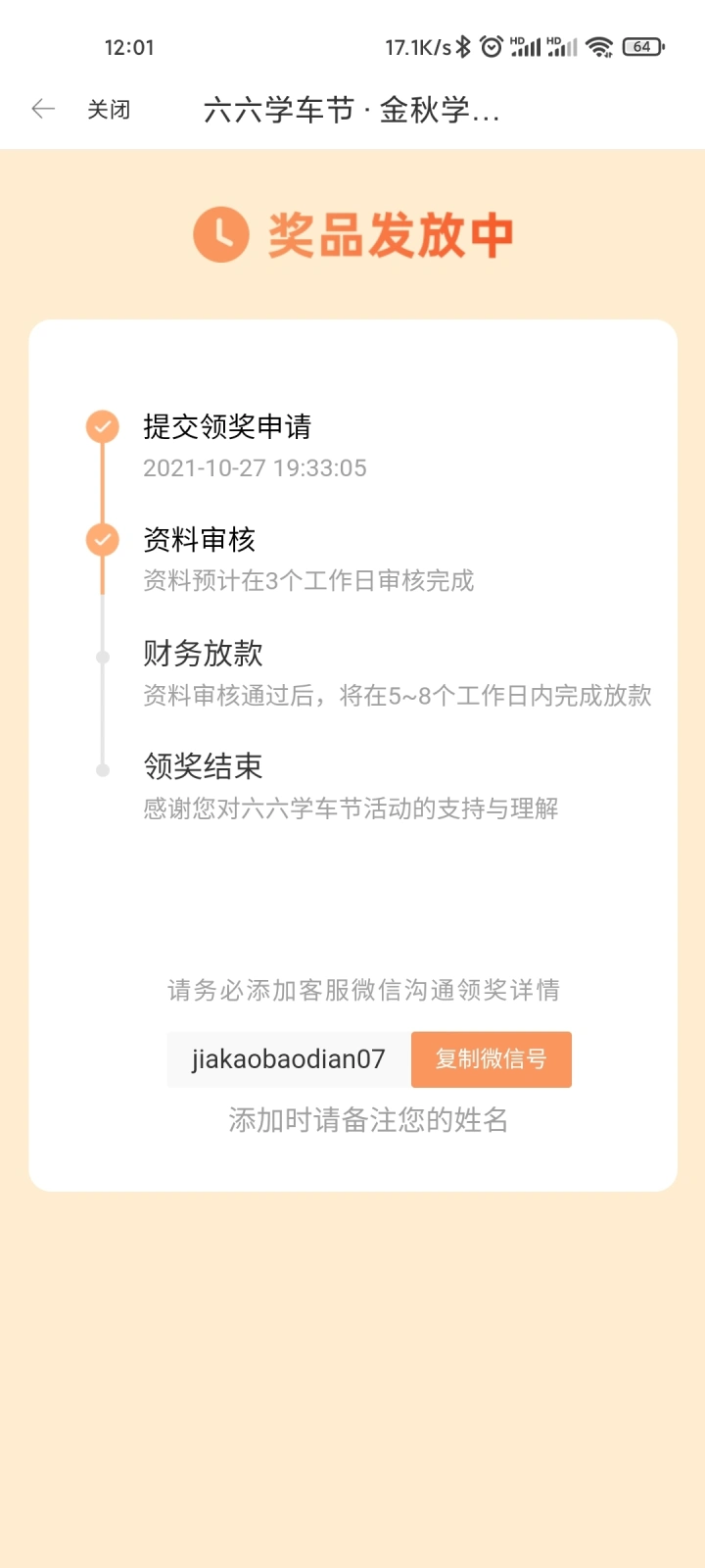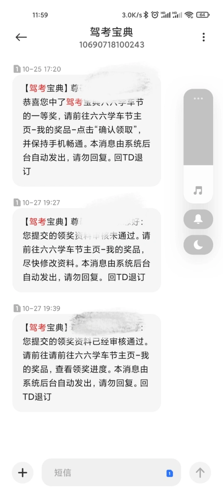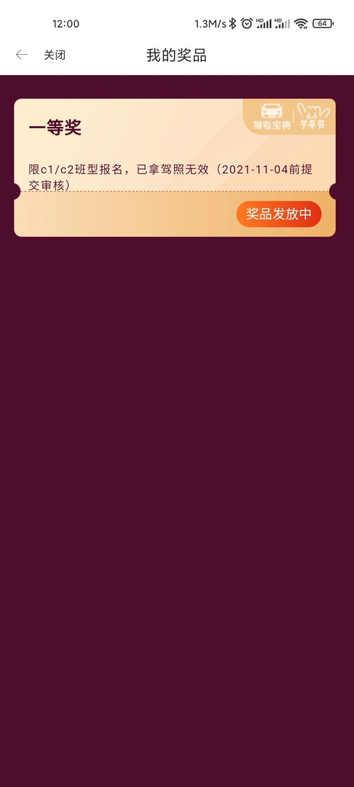 中了,中了,想报驾校,下载驾考宝典练题,无意中看到有66学车季的活动,抱着试一试的心态,买了,第一次没中,后来6.6返回来了,心想不中还能返回来就又买了一次,结果竟然中了,短信发过来以为是骗人的,结果上app一看果然中了,十多天就到账2000,真真是太感谢驾考宝典了!祝大家人人好运!