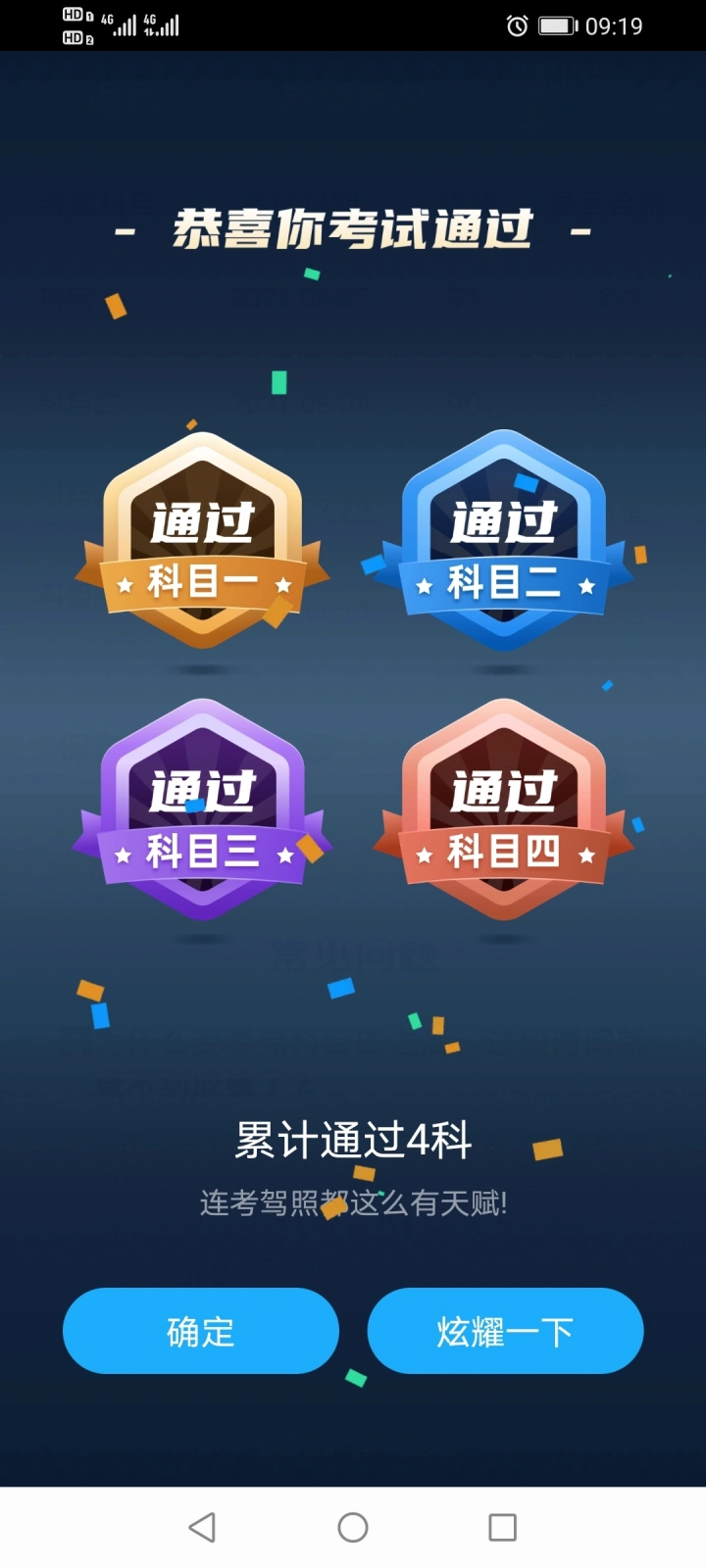 刚考完科四,考过了,传好运呢