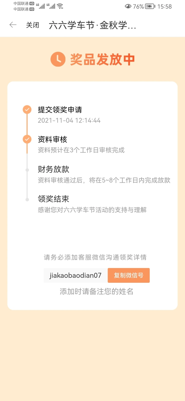 真实到账!真实到账!我本来打算考驾照,朋友推荐让我下载驾考宝典看看题,我看到这个活动的时候我就没想着中奖,反正就6.6,当时想着最多也就退回我的6.6,我同事也笑我不可能中奖,结果!真的中奖了,我就赶紧去报名了驾校,当时提交信息的时候也很忐忑,等了好几天快放弃的时候,竟然到账啦!亲人们,真实到账啊,简直了当时立马推荐给了好几个人,毕竟这种好事我不能只自己知道😄