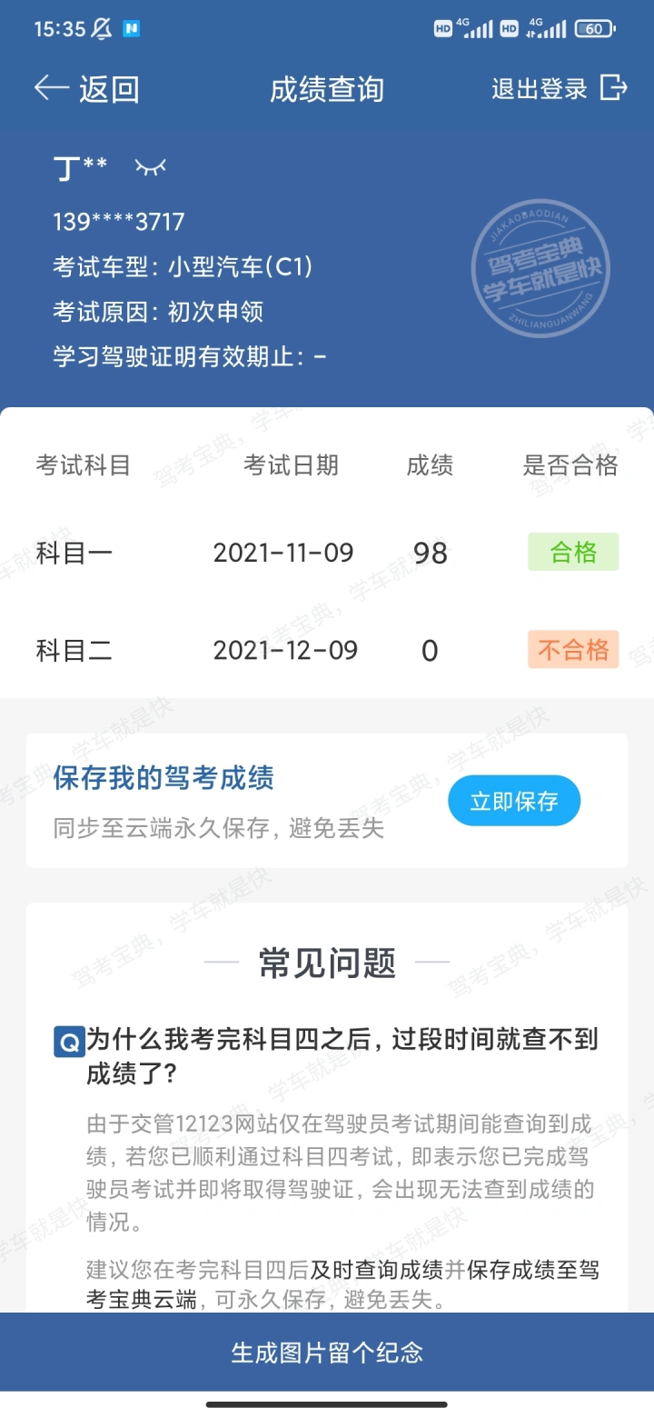 今天去考了科二。 昨天花了450去考场进行模拟,刚刚开始几圈是教练陪我用他的车模拟。后面两圈是用考场的车模拟。不得不说考场的陪练员小哥哥太好了,然后第一圈上坡停车扣了10分,第二圈上坡倒是没啥问题,直角转弯打慢了直接右前轮压线。 但是早上我六点就醒来了,PS:平常一觉睡到10点。七点20多到考场我太紧张了一直在给自己打气,说第一圈没过还有第二圈,等等好像到了九点多才到我考试,坐在那里等真的太难受了😭😭😭,第一圈小哥哥把车停好,然后我上车,他说好了直接叫他。我上了准备好了,他人不见了,我心想咋了人呢,然后另外的小哥哥过来问你准备好没,我说好了,他说开始吧,我直接人傻掉,他怎么不上车吗,科目二就我一个人在车上考吗,开局就慌了,定点停车扣10分,结果我倒在了侧方上,直接压线直接挂了,我人慌了,直接开进了s型,结果s第二个弯开始的地方,我tm没注意到前面的车还没出去,我赶紧挺住,辛亏没碍着别人考试。 第二圈开定点我人彻底慌了忘了前面给自己要冷静的建议,停车的线我还没看清我就不知道从哪里停车。挂了。我想着把剩下的做完吧,我上坡,车直接熄火,我打火,车没挂档,那个语音播报器一直在说熄火未空档打火,挂科。我手忙脚乱。然后考场的人上车,说下车,我没听清,以为上坡,又打火。然后最终还是下了车。 我平常练的挺好的,倒车和侧方基本没错。可是我考的时候太紧张了。 高考的时候都没我靠科目二紧张。 给大家的建议:不要紧张!!!调整心态。我相信我下次一定能行!!!